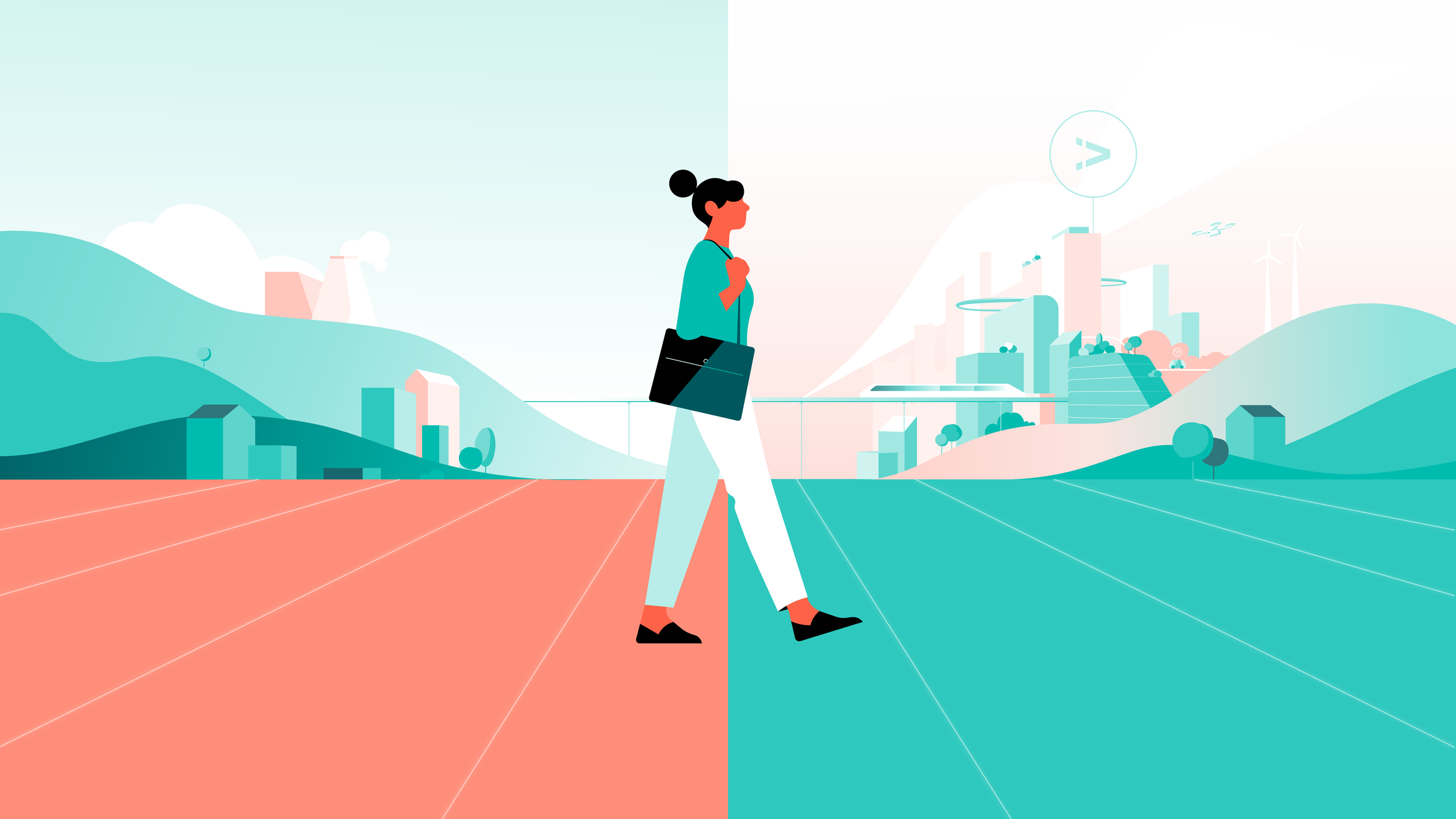A visual story for VISTA college that illustrates the transition from traditional education to a future-oriented learning environment.