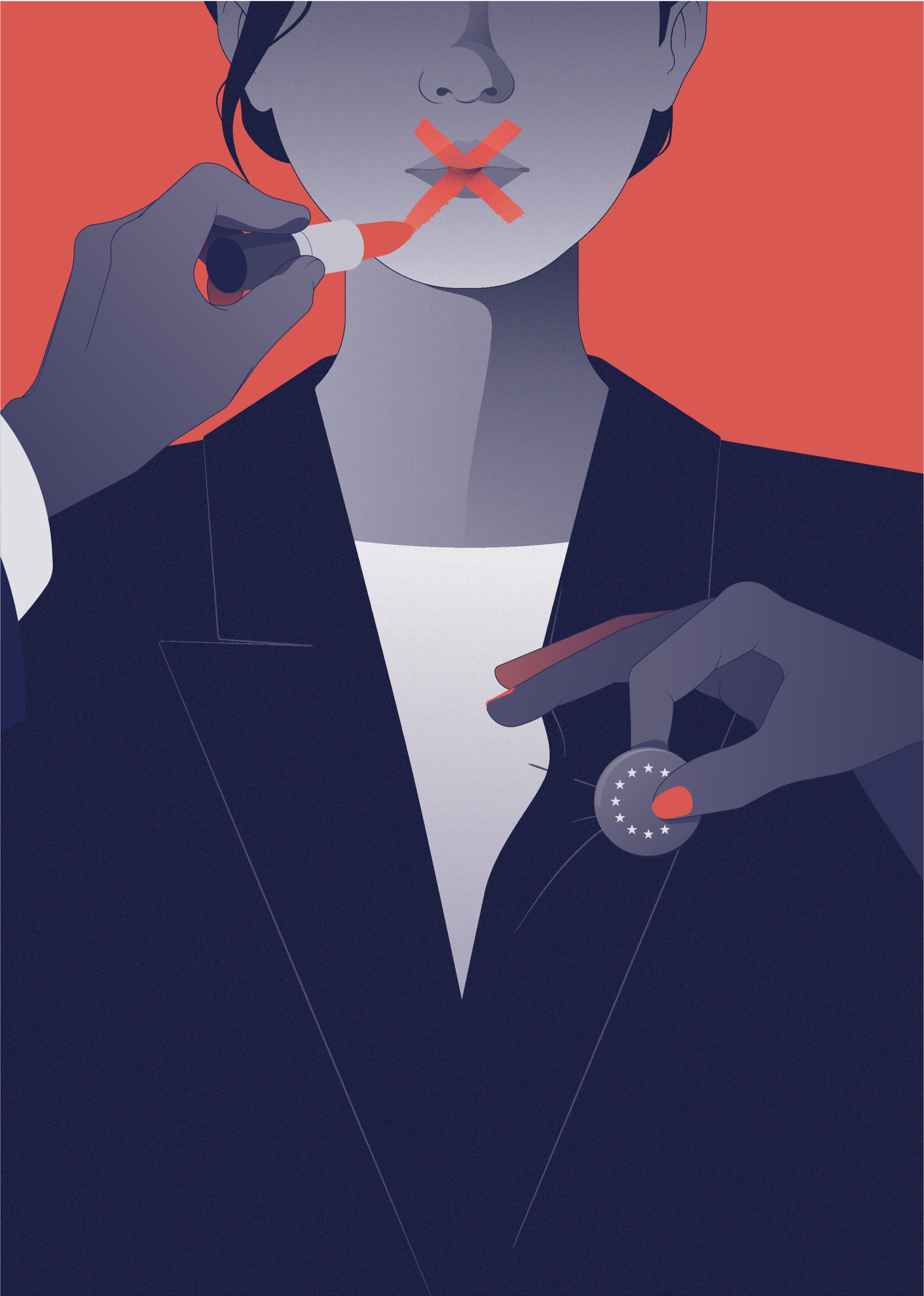 The illustration symbolizes the silencing of women in European politics - caused by (online) hate and harassment - leading to a decline in female representation in European politics.